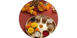 Auspicious Brass Aarti Pooja Thali Set | Puja Thali(Plate) with Diya, Kumkum & Turmeric Holders