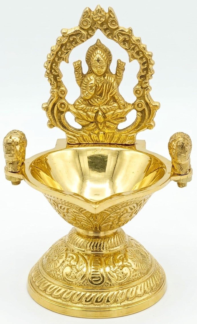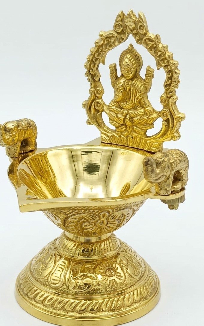 Antique Brass Lakshmi Diya with Elephant Design | Traditional Pooja Oil Lamp Deepam | Decorative Brass Lamp for Home Temple, Diwali & Spiritual DécorAntique Brass Lakshmi Diya with Elephant Design | Traditional Pooja Oil Lamp Deepam | Decorative Brass Lamp for Home Temple, Diwali & Spiritual Décor