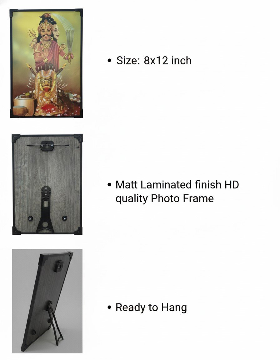 This beautifully designed frame captures his powerful presence in rich detail, making it perfect for pooja rooms, home temples, living areas, spiritual corners, and offices. Whether you want divine blessings, cultural décor, or a thoughtful spiritual gift, this photo frame adds grace, protection, and positivity to any space. Bring home the presence of the mighty protector and leader of guardian spirits—for strength, stability, and sacred energy every day.