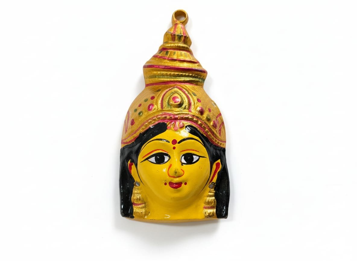 - Vibrant Traditional Craftsmanship: Features a bold, eye-catching design in rich yellow, deep red, and gold accents, capturing the traditional artistry of Indian folk deities.