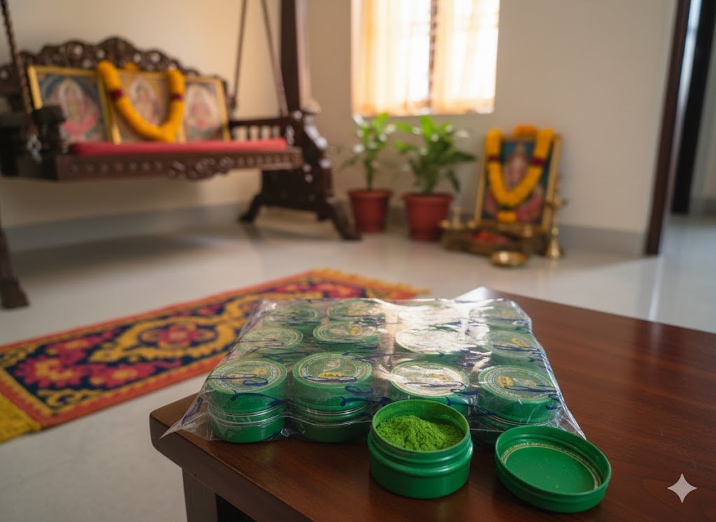Green Kubera Kumkum is associated with Lord Kubera and is believed to invite abundance, financial stability, and new opportunities into your household.
