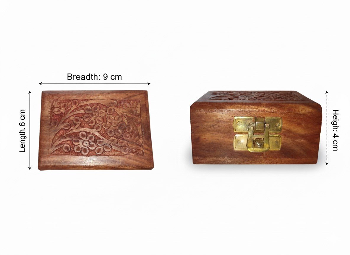 Be the first to review “Handcrafted Wooden Floral Carving Trinket/Shaligram Box with Brass Clasp |Rectangle Decorative Wooden Box (3.5×2.5 inches)” Cancel reply