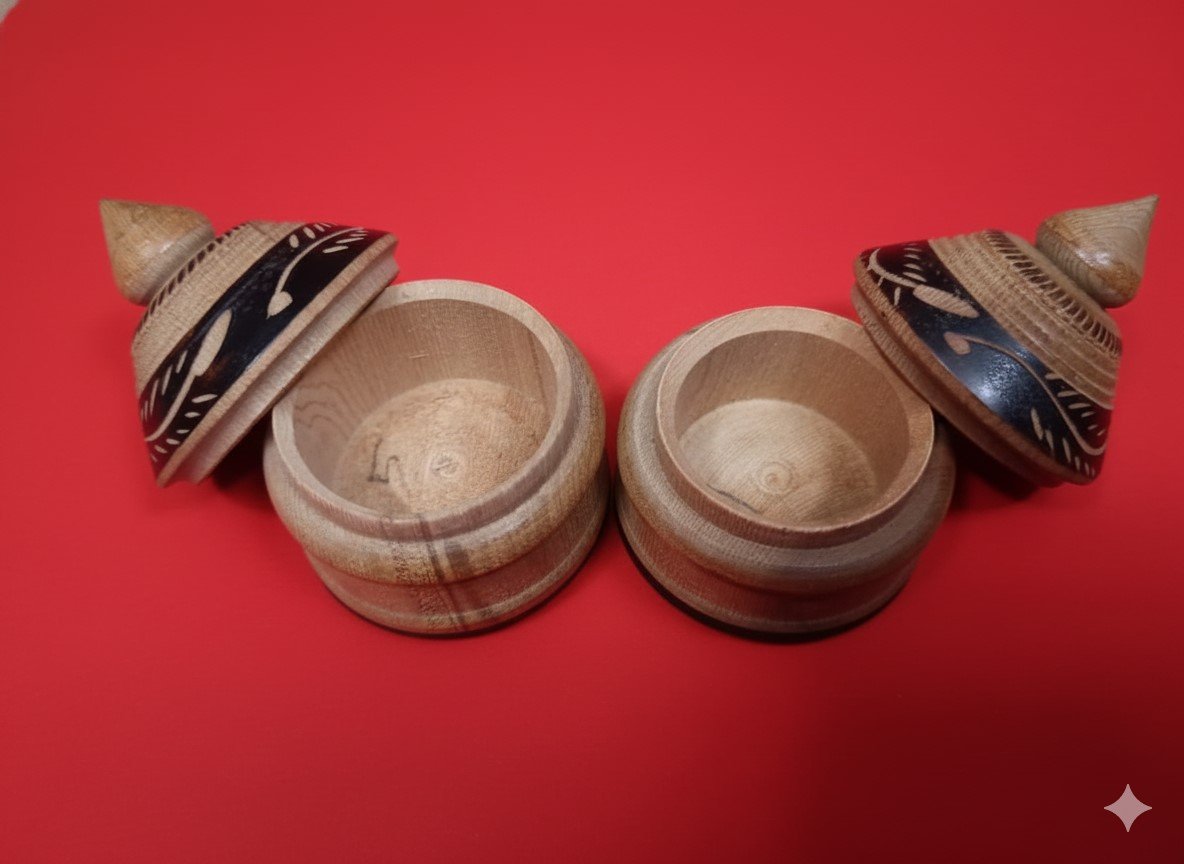 Handcrafted Wooden Kumkum/Sindoor Boxes (Set of 2)