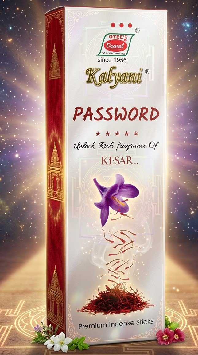 Elevate your spiritual space with the soul-soothing aroma of Kalyani Password Kesar Incense Sticks. Expertly crafted to capture the true essence of exotic Saffron (Kesar), these premium sticks “unlock” a rich, deep fragrance that lingers long after the flame is out.