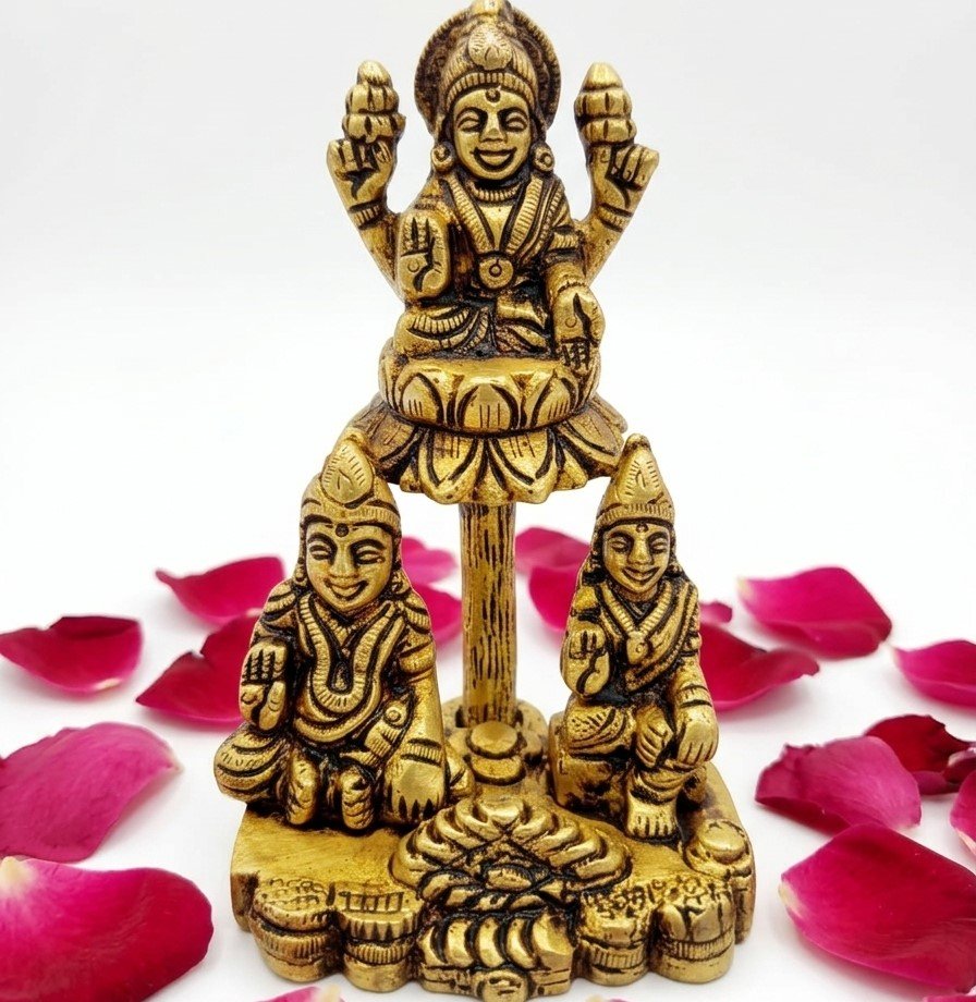 Made from premium-quality brass with an elegant antique finish, this sacred murti features intricate detailing that enhances its traditional and spiritual appeal. Ideal for placing in pooja rooms, cash counters, offices, and homes, this idol is believed to attract prosperity and remove financial obstacles.
