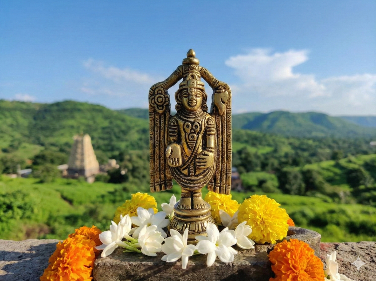 - Authentic Traditional Design: Faithfully replicates the iconic standing posture of Lord Venkateswara, complete with the prominent crown (Kirita) and the protective arch (Prabha).