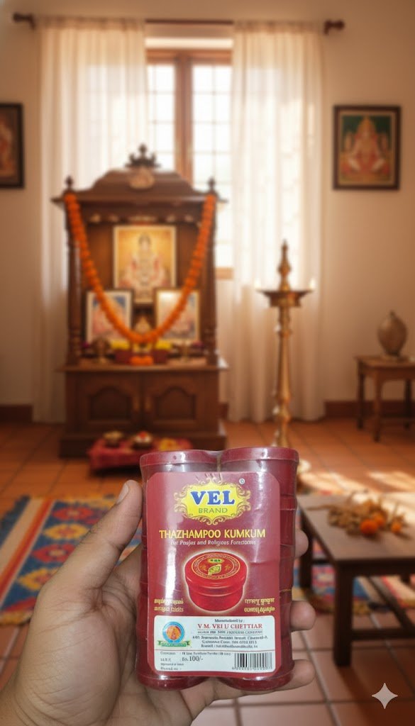 Applying thazhampoo kumkum is believed to attract blessings, positive vibrations, and overall well-being in your home.