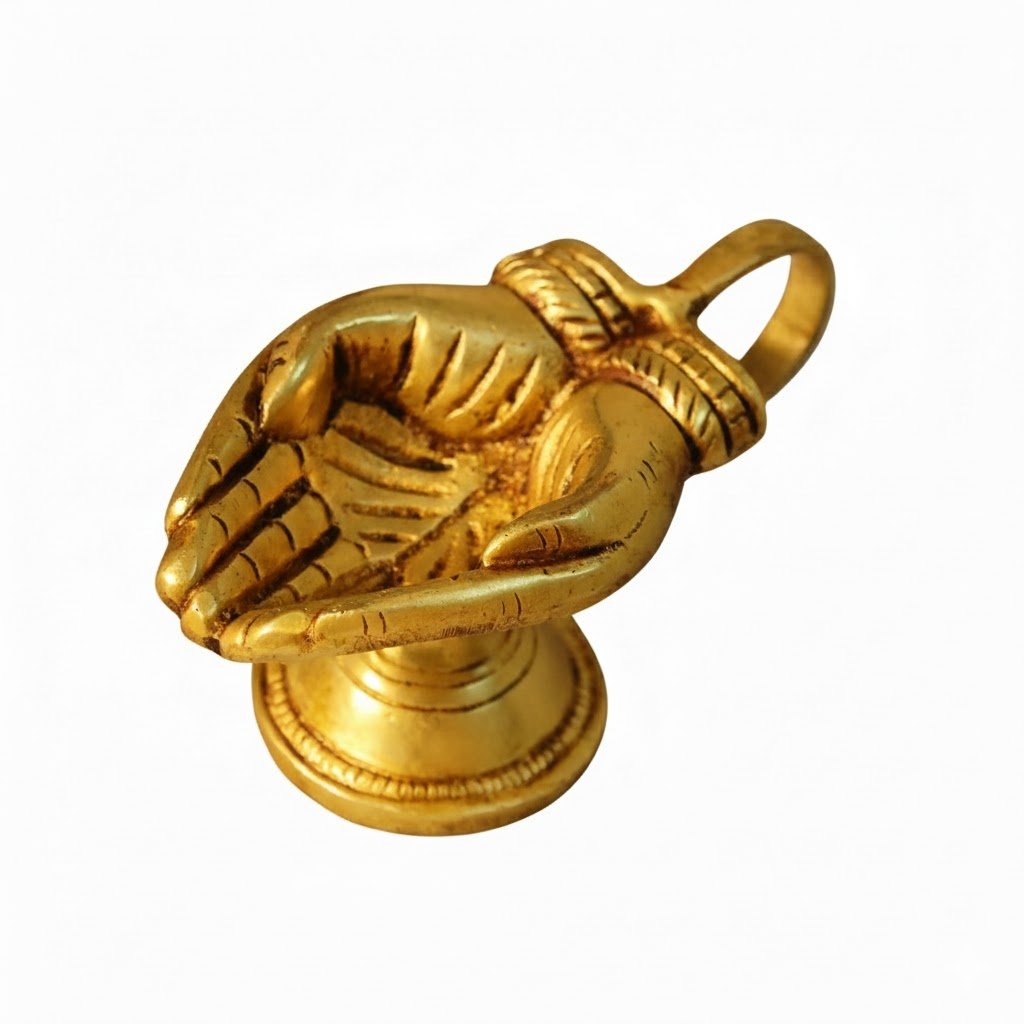 Pure Brass Anjali Mudra Hand Diya 5 inches height – Handcrafted Prayer Palm Oil Lamp for Murugan Pooja and Sacred Rituals