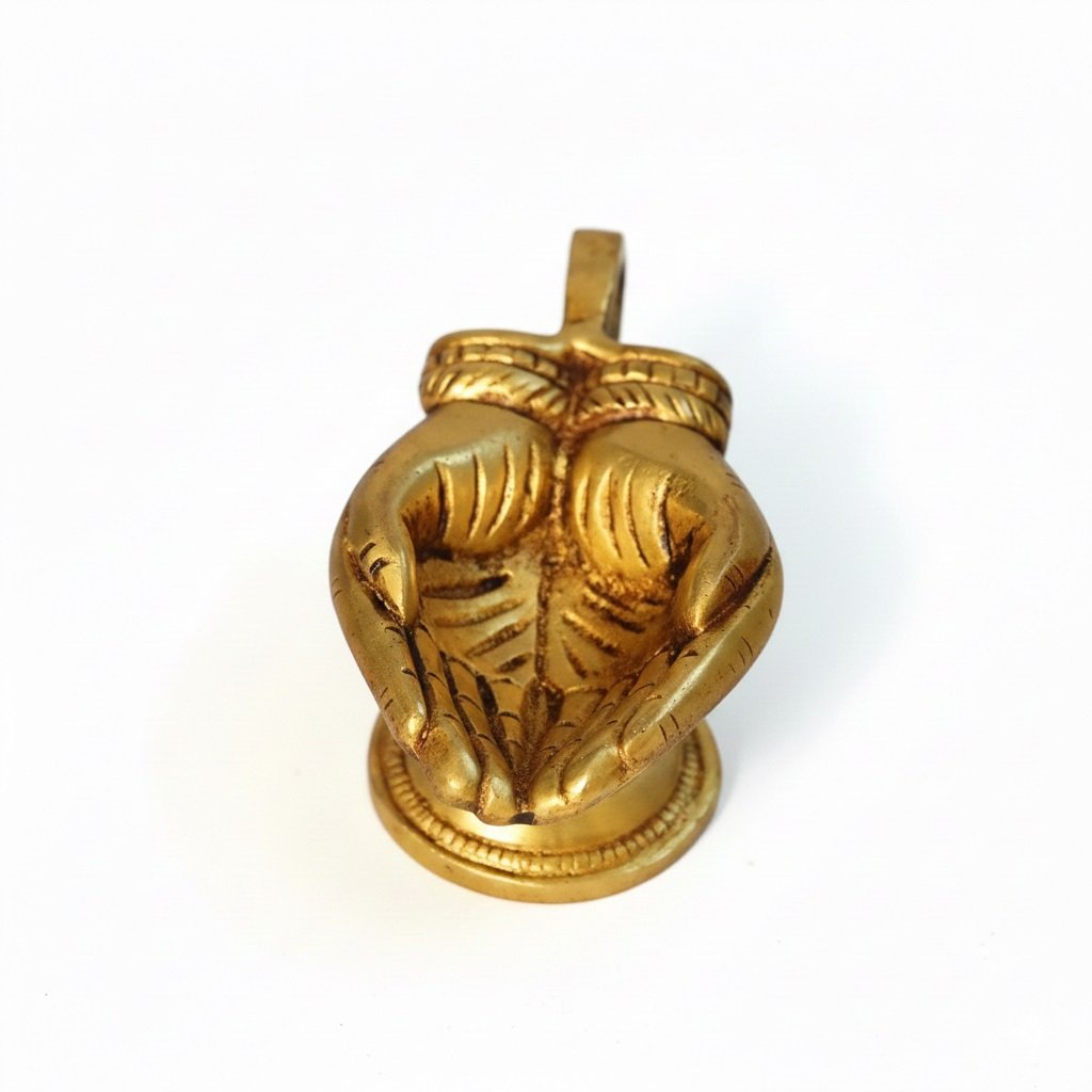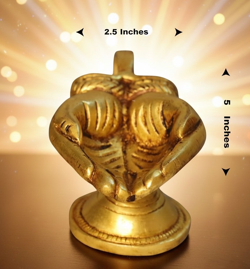 Elevate your spiritual experience with the beautifully unique Anjali Mudra Hand Diya 5 inches height. This handcrafted brass oil lamp is designed in the shape of two palms joined in a gesture of humble salutation (Anjali Mudra) and offering. A highly trending spiritual item, this diya has become a favorite among devotees, especially for Murugan Pooja, symbolizing total surrender and devotion to the Lord.