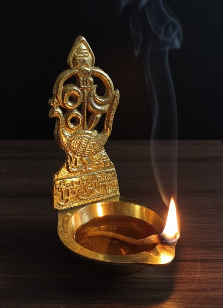 Be the first to review “Pure Brass Murugan Peacock Vel Diya (3.5 Inch) – Handcrafted Om Vel Deepam with Sacred Tamil Text for Success and Victory” Cancel reply