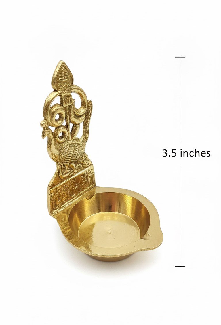 Pure Brass Murugan Peacock Vel Diya (3.5 Inch) – Handcrafted Om Vel Deepam with Sacred Tamil Text for Success and Victory