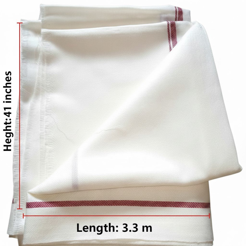 Pure Ritual White Dhavali with Sacred Red Border |Premium Prayer & Puja Cloth| 3.3 meters Dhavali