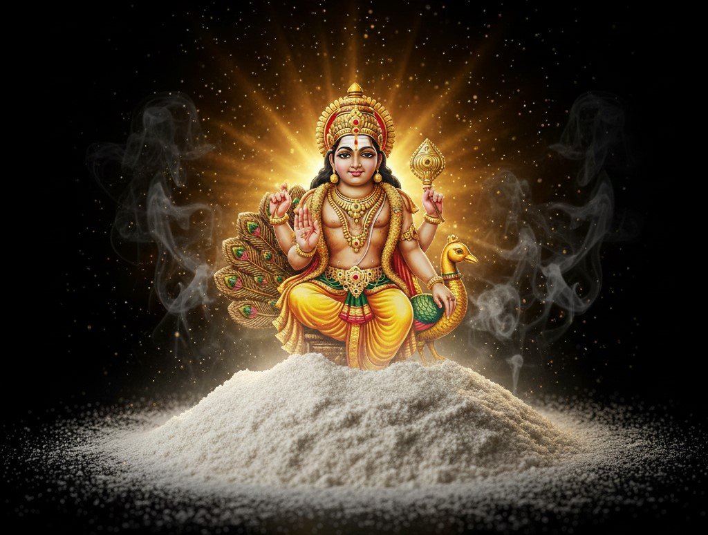 Spiritual Significance: Vibhuti (also known as Bhasma or Thiruneeru) symbolizes the mortal nature of life and the ultimate truth of Shiva and Shakti in the universe. It is believed to attract positive energy, remove negative forces, and offer divine blessings and protection.