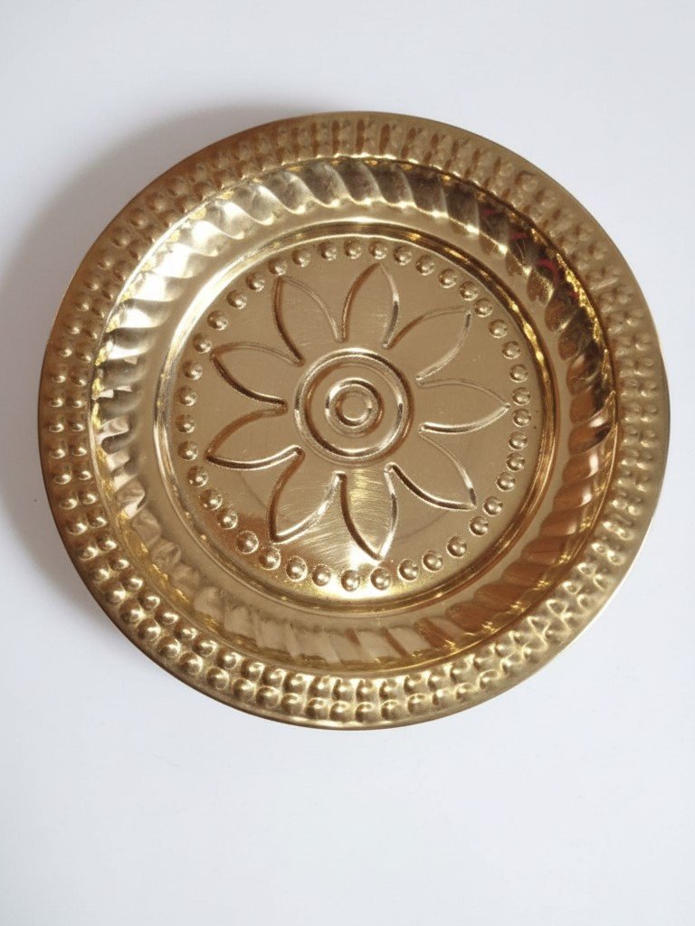 Versatile Ritual Tool: It serves perfectly as a base for a small Diya, holding Kumkum and Chandan, or as a dedicated plate for Aarti in smaller home shrines.